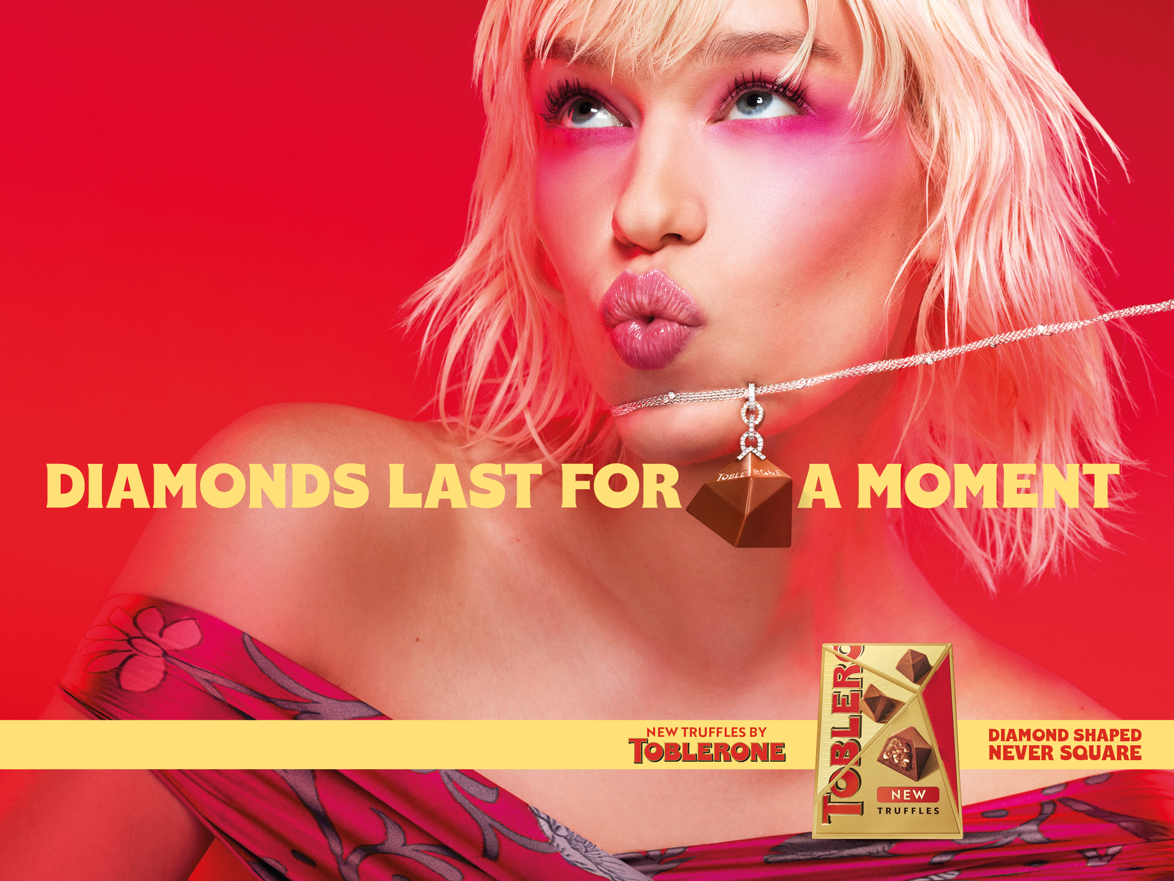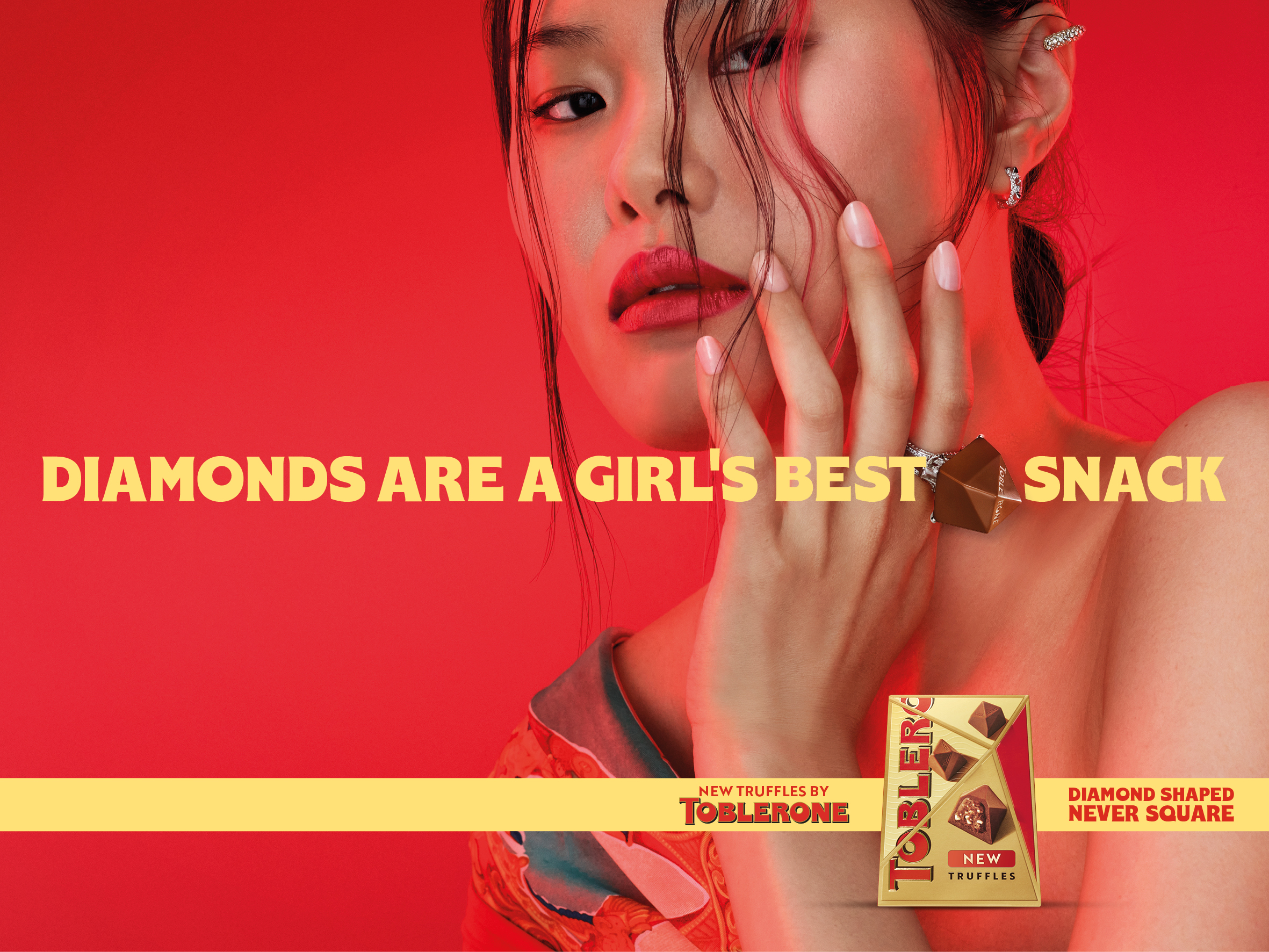 The updated creative approach for the brand shines through in U.K. advertisements promoting Toblerone Truffles, which feature the gemstone-shaped chocolates as luxury jewelry. Additional creative elements will roll out in other markets in the coming months. An example of the “Never Square” creative can be viewed here, and a 30-second Toblerone Truffles campaign here.